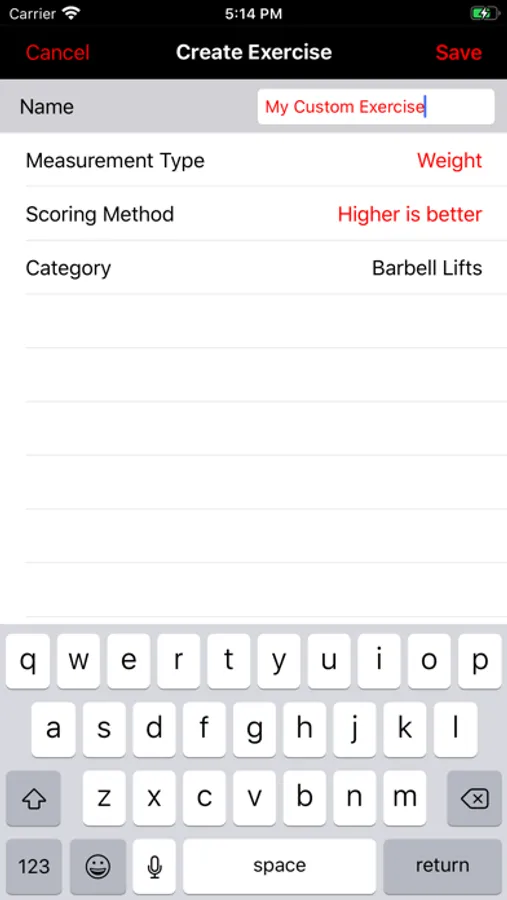 + Intuitive entry of time, weight, repetition and round based workouts.