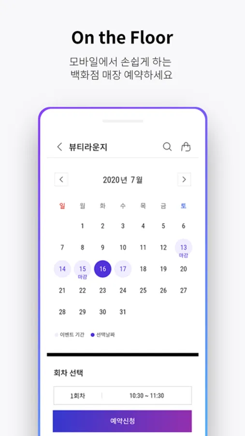 백화점 매장예약을 복잡한 절차 없이 모바일에서도 간편하게 예약하세요.