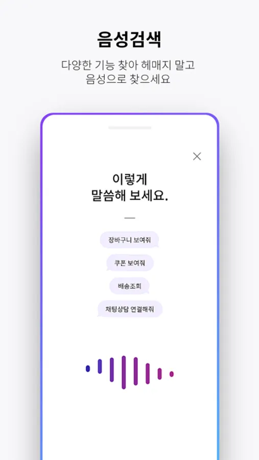 음성만으로 상품 검색부터 주요 메뉴 이동 및 출석체크 이벤트에도 응모하세요.
