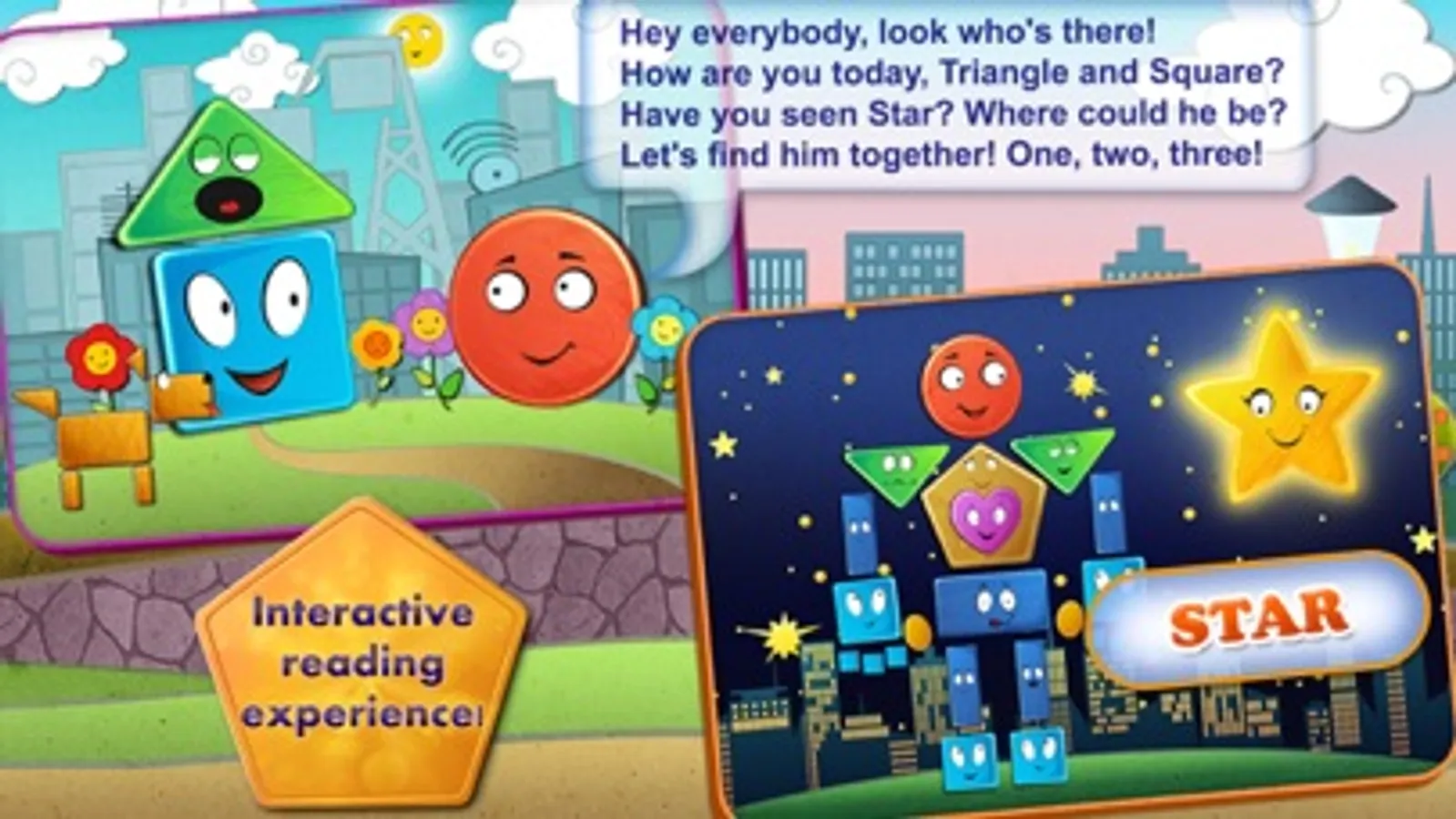 In this rich and interactive educational game, everything is alive - touch any scenery object or any of the leading characters to see what they can do. Join Circle as he sets off one morning to find his friend, Star. Circle meets many more shapes along the way who aid him in his quest!
