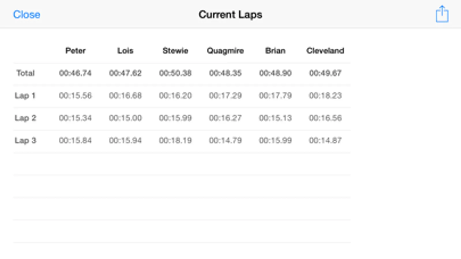 Run multiple stopwatches at the same time. Save, browse and email results.