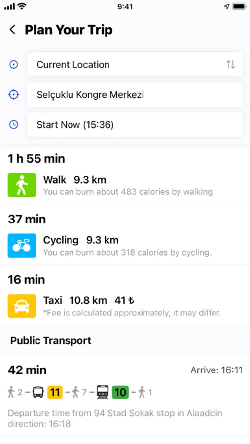 Instantly view all transportation options, including buses, trams, and bicycles.