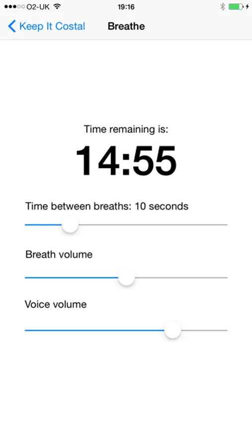 This application provides an audio experience where users can pause and breathe along with the selected profile over a set time to warm up their costal diaphragms.