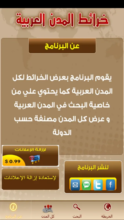 يشمل البرنامج معظم خرائط المدن العربية الرئسية و المتوفرة في خرائط جوجل.