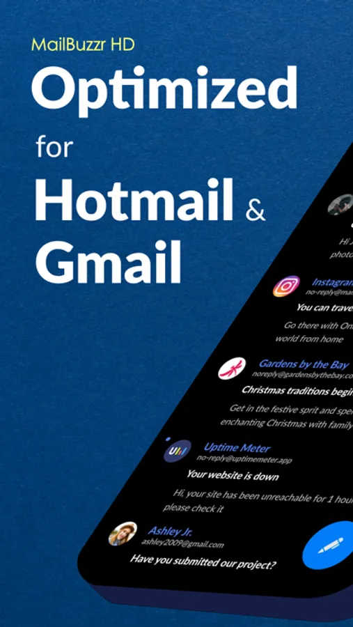 Blazing fast and feature-rich email app that simply works! MailBuzz HD for Hotmail, Outlook, and Gmail is a handy app to check and manage all your inboxes. It makes it easy to go through your emails than ever before. Now is totally FREE!