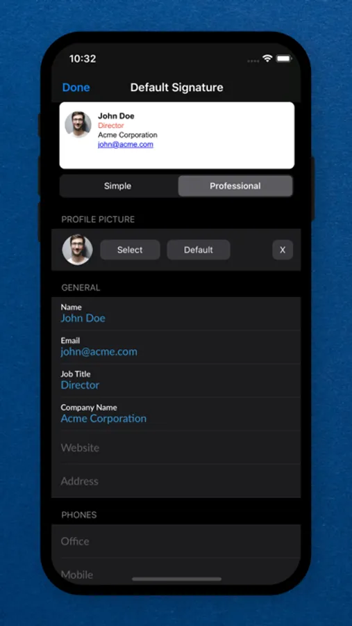 Choose either simple or professional design to make your email signature clean, informative, and looks professional.