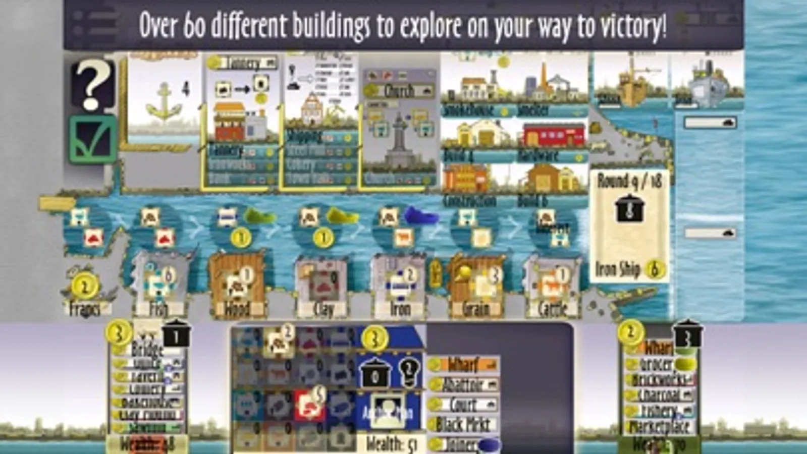 In this universal adaptation of the popular board game (winner of a 2009 International Gamers Award, among others), you can compete with up to 5 people — or against a computer's AI — to construct buildings and ships to support your shipping empire. An in-depth tutorial and hint system help you develop the strategy you will need to dominate the harbor.