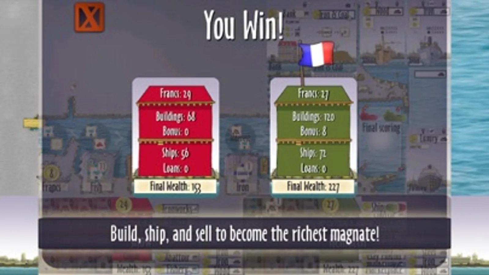 Collect resources to build and use new buildings, while paying your workers and saving up for ships. Buildings are a good investment, but ships provide necessary income. Deciding where to put your resources early on may determine your fate later in the game, so choose wisely!
