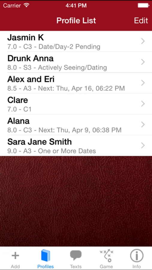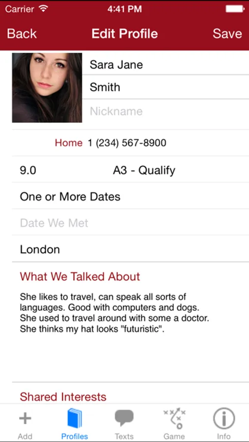 This app is intended to keep you covered. By recording important notes and even setting reminders for when to call her next, you will have an uncanny ability to recall important details, contact her at just the right time, have interesting things to talk about, and even remember possible date options! And with the pre-made text pebbles, you'll always have something funny to keep her thinking of you!