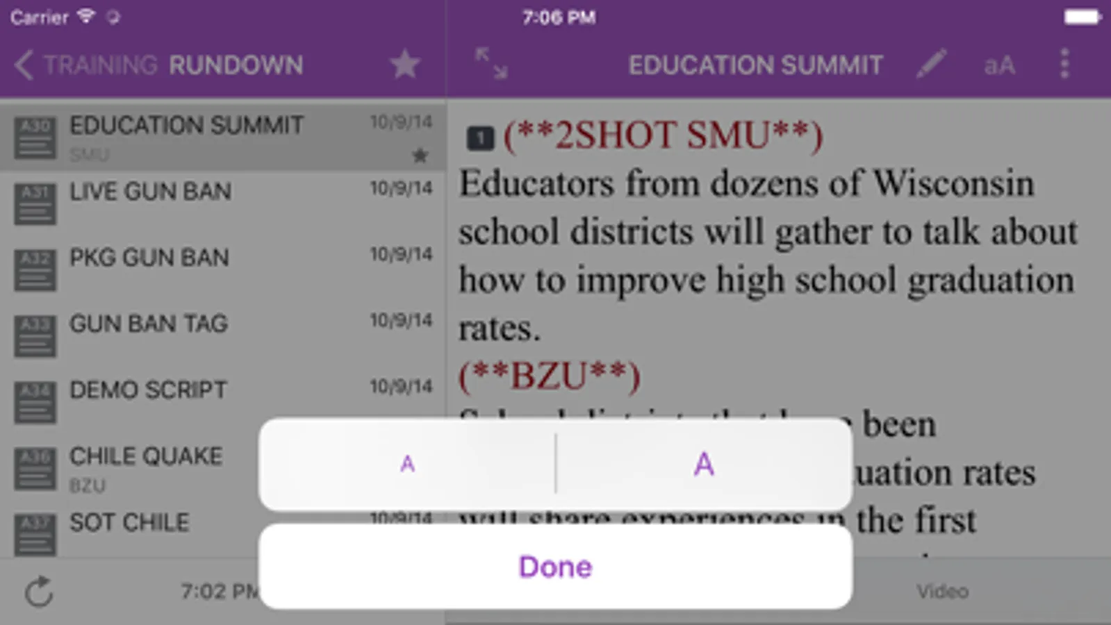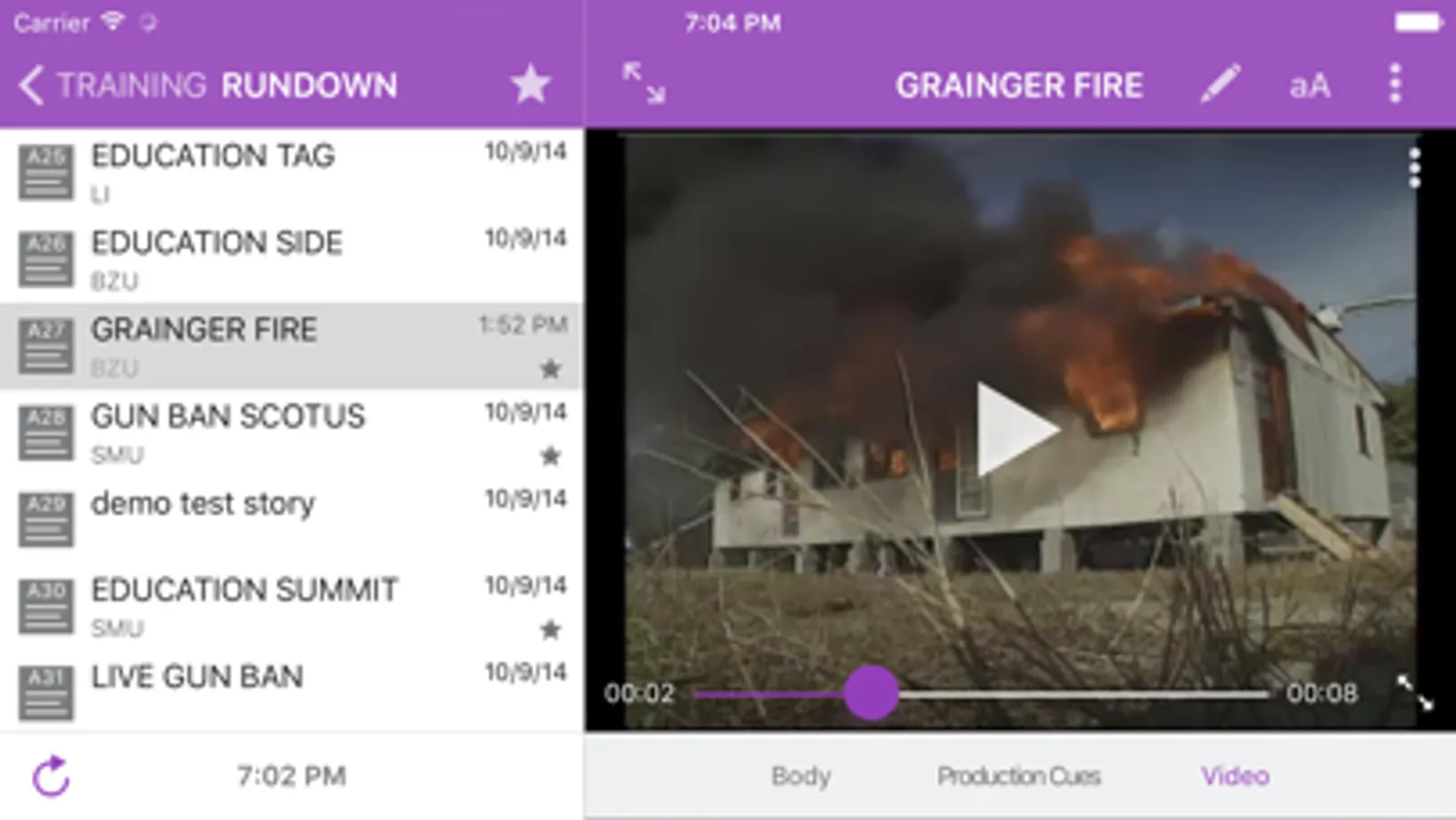 · Move between stories using the Sidebar queue view, or move between stories by tapping items in the rundown queue
