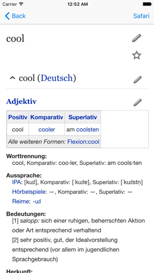 * Zu gefundenen Reimen gibt es ohne Umwege weiterführende Informationen, insbesondere auch zur Bedeutung (via wiktionary.org)