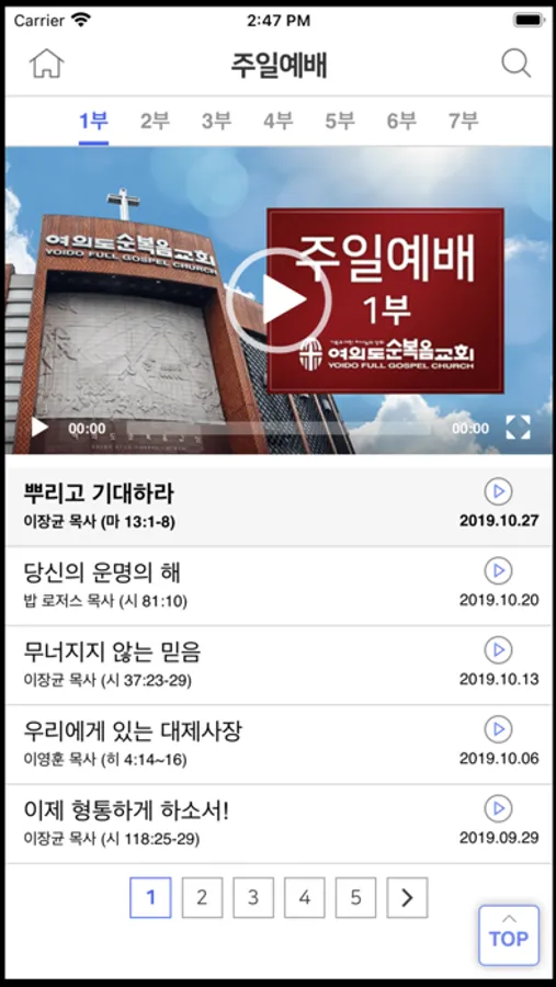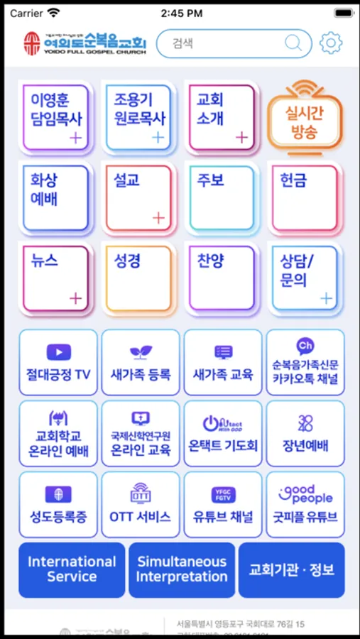1. 예배/설교 : 조용기목사, 이영훈목사 최근설교 및 집회영상 및 수요예배, 철야예배, 구역예배 VOD, 생방송 서비스