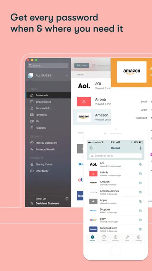- Sync your Dashlane data to every device automatically, even if your phone and computer run on different systems