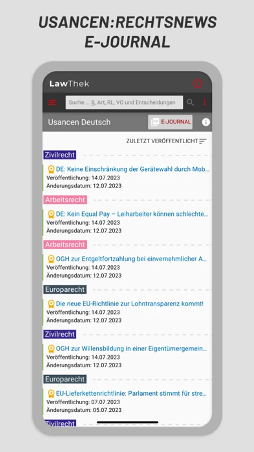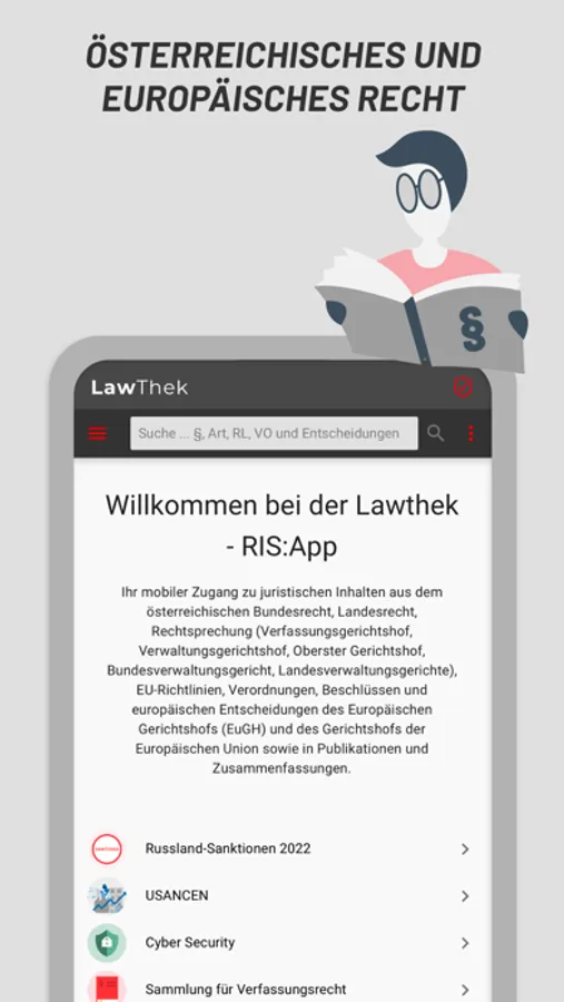Die LawThek - RIS:App stellt Jurist:innen, Rechtsanwender:innen und allen am Recht und Gesetz Interessierten den zentralen Zugriff auf das österreichische Rechtsinformationssystem des Bundes (RIS) sowie auf Richtlinien, Verordnungen, Beschlüsse und EuGH Entscheidungen aus EUR-Lex KOSTENOS, ORTSUNABHÄNGIG, UMFASSEND und TAGESAKTUEKK zur Verfügung.