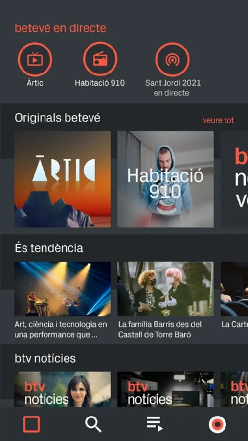 Hi podràs veure en directe els programes de televisió, escoltar la radio o recuperar els continguts Originals de betevé.