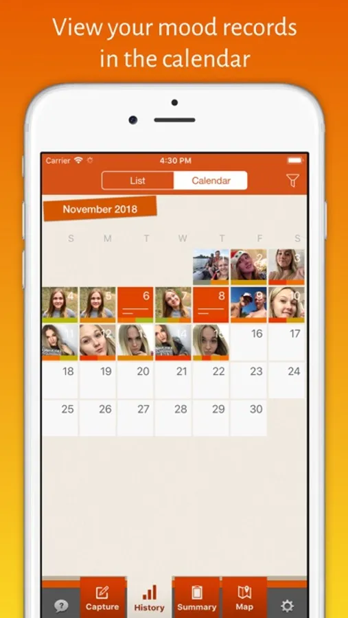 - Possibility to attach self-portrait photos to mood records and realize how your mood affects your appearance.