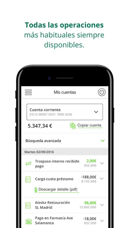 - Consulta de saldo y movimientos de cuentas y tarjetas.