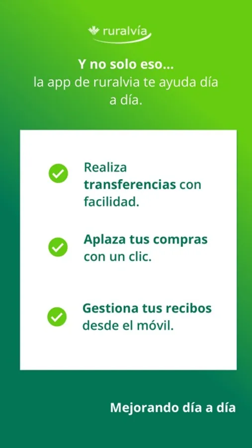 Prueba y disfruta de la comodidad de operar a través de ruralvía móvil, todas tus necesidades financieras a un toque.