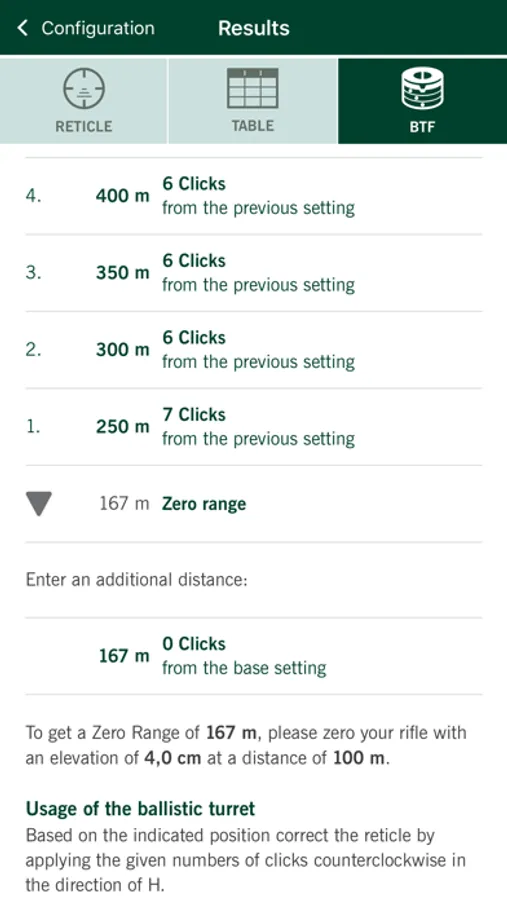 Determine your individual klick-values (ballistic turret) resp. correction values (distance reticles) according to