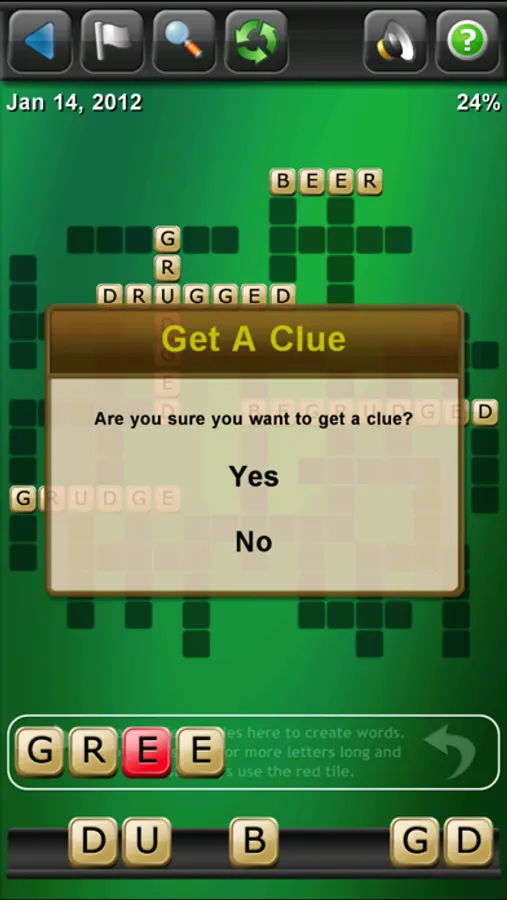 If you do get stuck press the "Clue" button to have one of the hidden letters revealed. But the goal is to try and solve 100% of the hidden words without getting any clues!