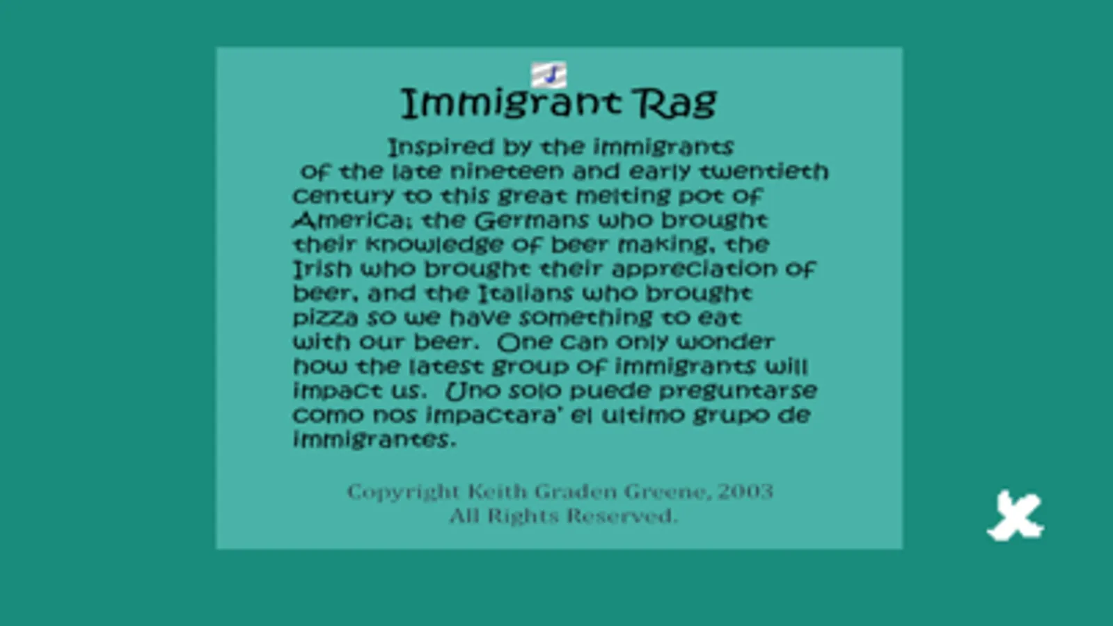 Inspired by the immigrants of the late nineteen and early twentieth century to this great melting pot of America; the Germans who brought their knowledge of beer making, the Irish who brought their appreciation of beer, and the Italians who brought pizza so we have something to eat with our beer. One can only wonder how the latest group of immigrants will impact us. Uno solo puede preguntarse como nos impactara’ el ultimo grupo de immigrantes.