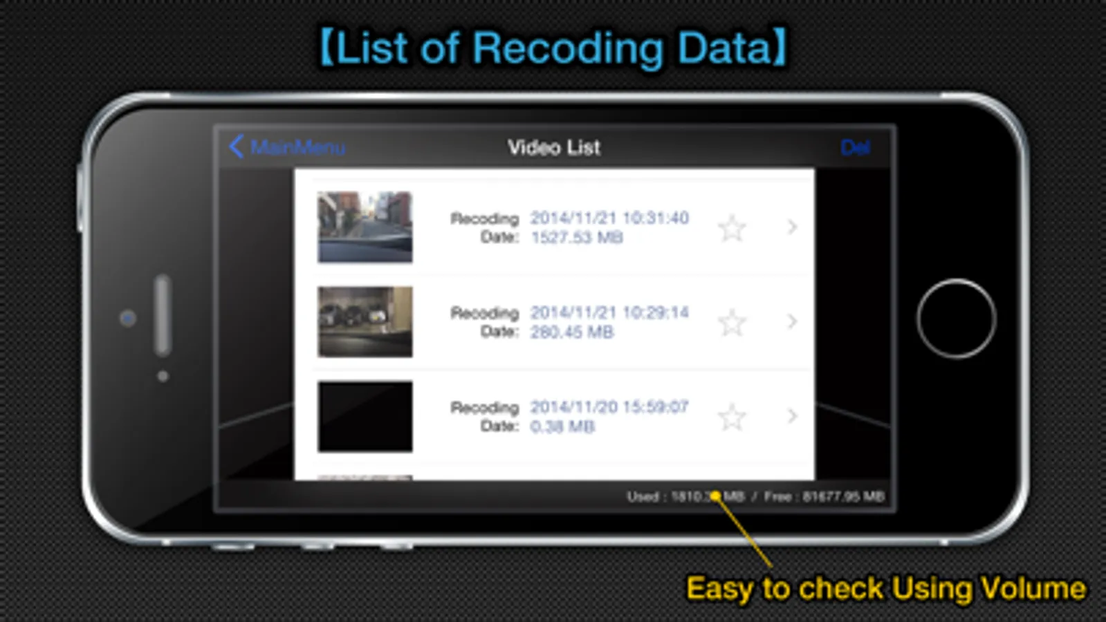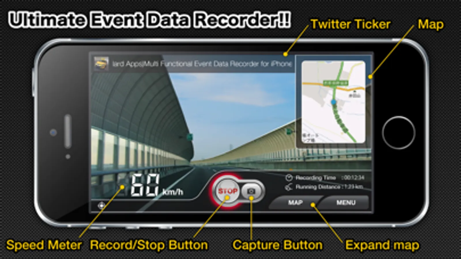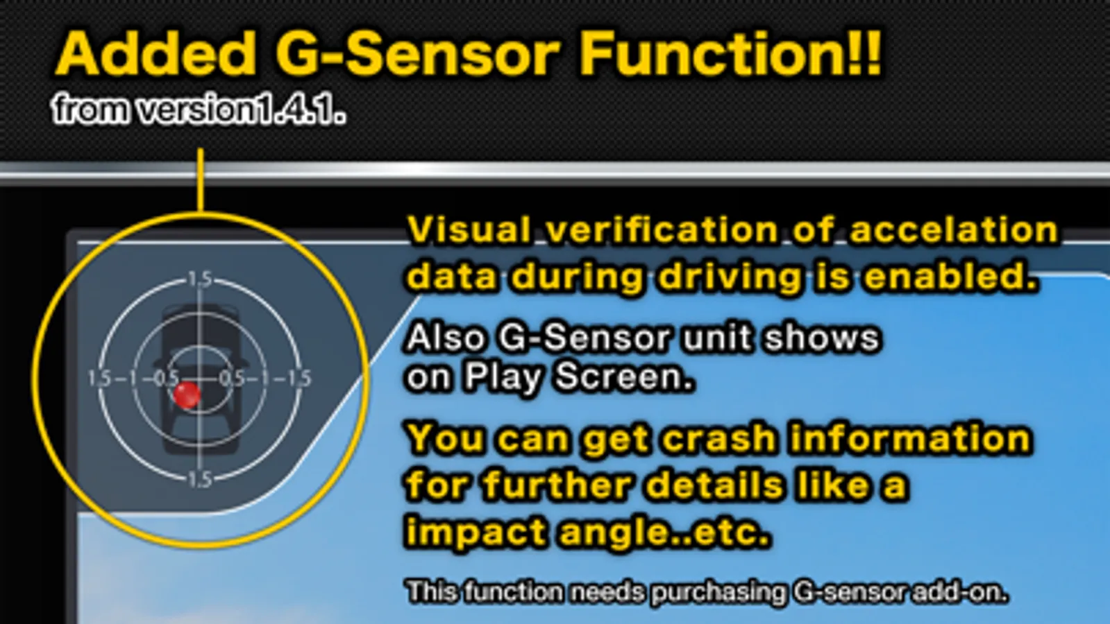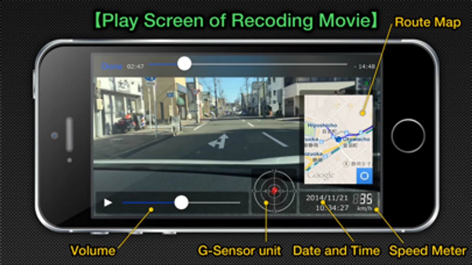 MultiEDR can sense the shock during the drive by using the acceleration sensor of iPhone, and record both one minute before and after the shock.