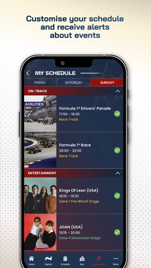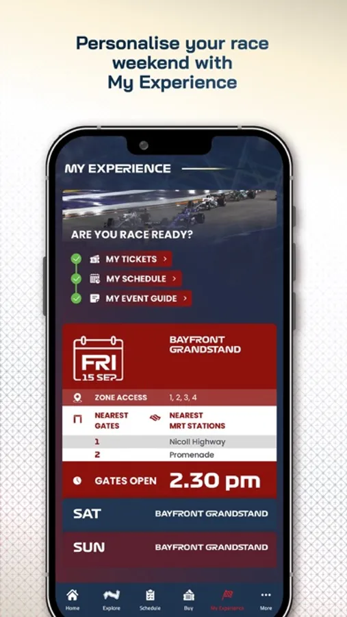 Stay on track with important information and timely reminders customized for your ticket over the race weekend.