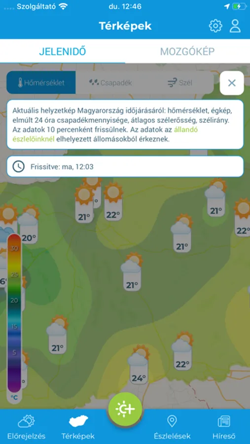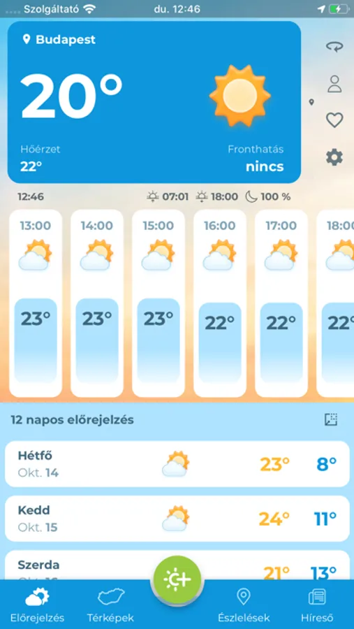 Alkalmazásunk több mint 23 000 hazai és külföldi városra ad 12 napos és órás előrejelzést, ezen felül az aktuális napra szöveges előrejelzést hazánk területére. Az aktuális időjárást mutató kártyán hőmérsékletről, hőérzetről, égképről, és fronthatásról tájékozódhatsz, ha megfordítod, akkor pedig láthatod a többi időjárási adatot is.