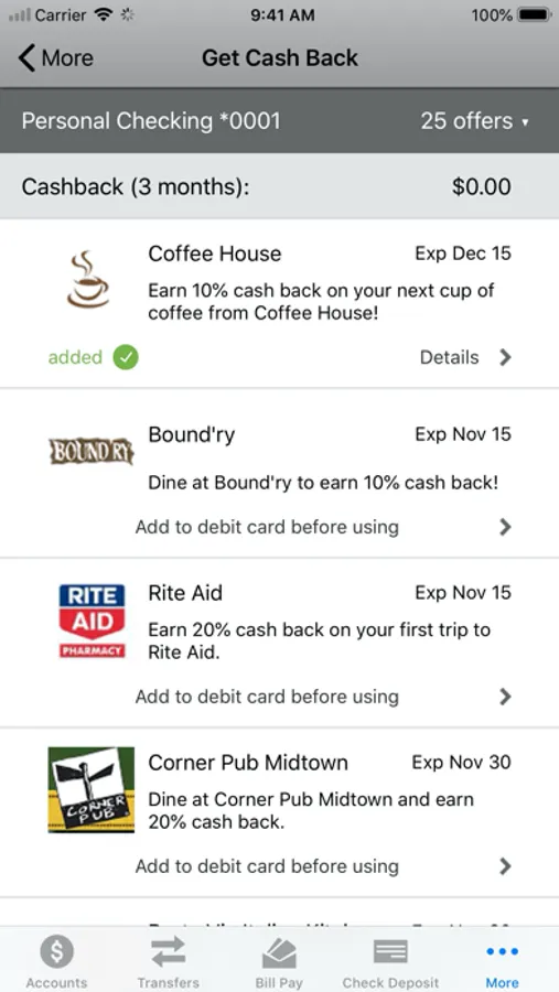 You can check your balance, view account activity, pay bills, transfer money between accounts, view and activate your cash back offers and find the nearest Needham Bank location or ATM - all right at your fingertips.