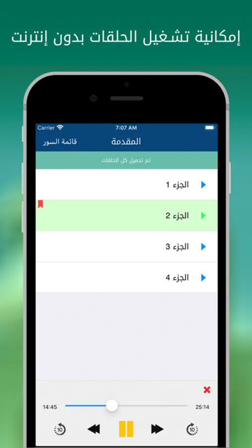 - تشغيل الحلقات دون الحاجة للإنترنت.