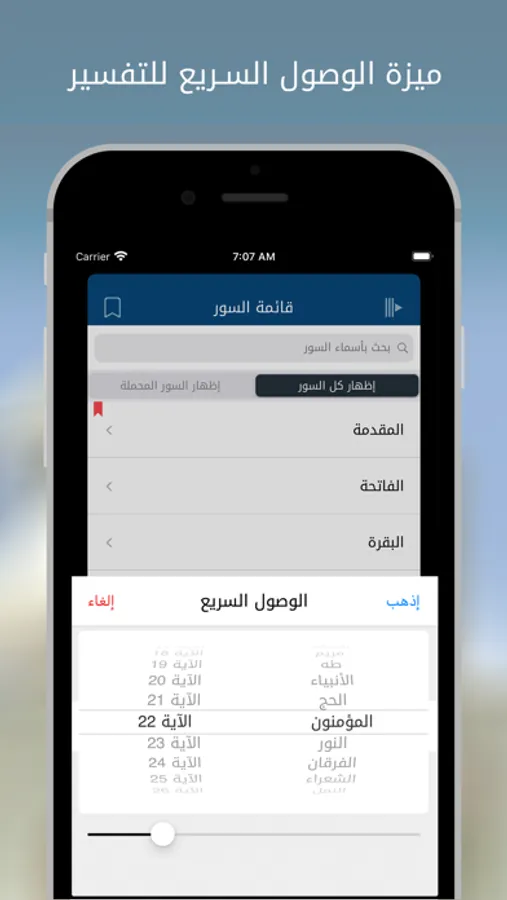 - البحث والوصول السريع لتفسير آية معينة من القرآن الكريم.