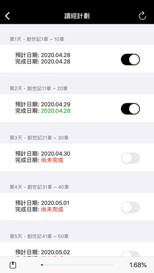 ● 」讀經計劃「功能,設定您專屬的讀經進度