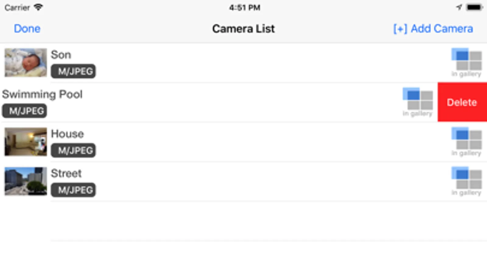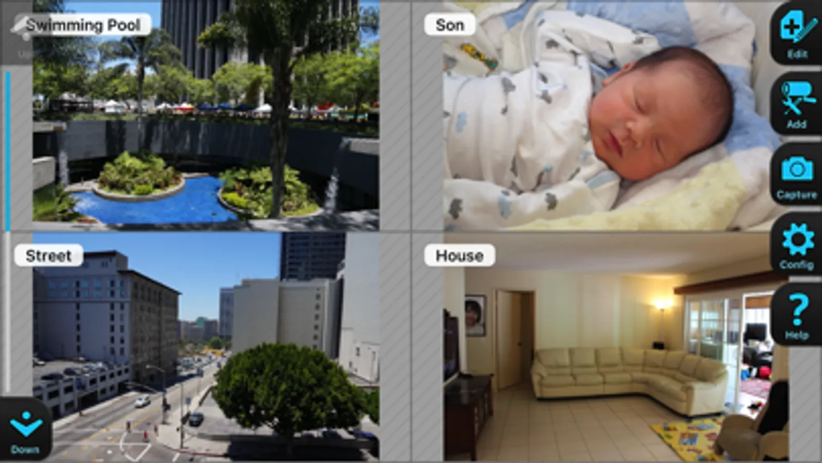 - Unlimited number of cameras. View up to 4 cameras on screen at a time .