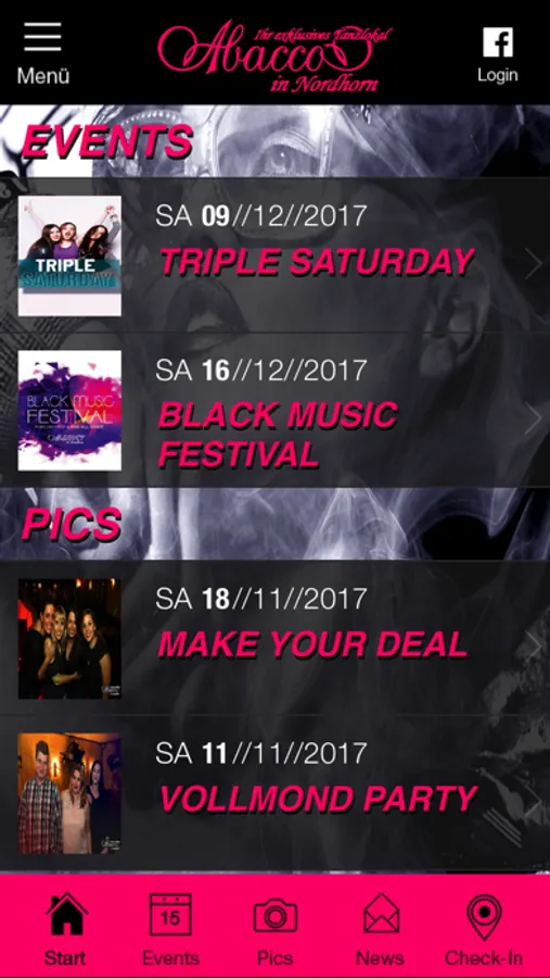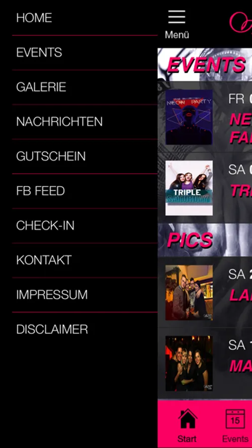 - eine Übersicht der nächsten Events,