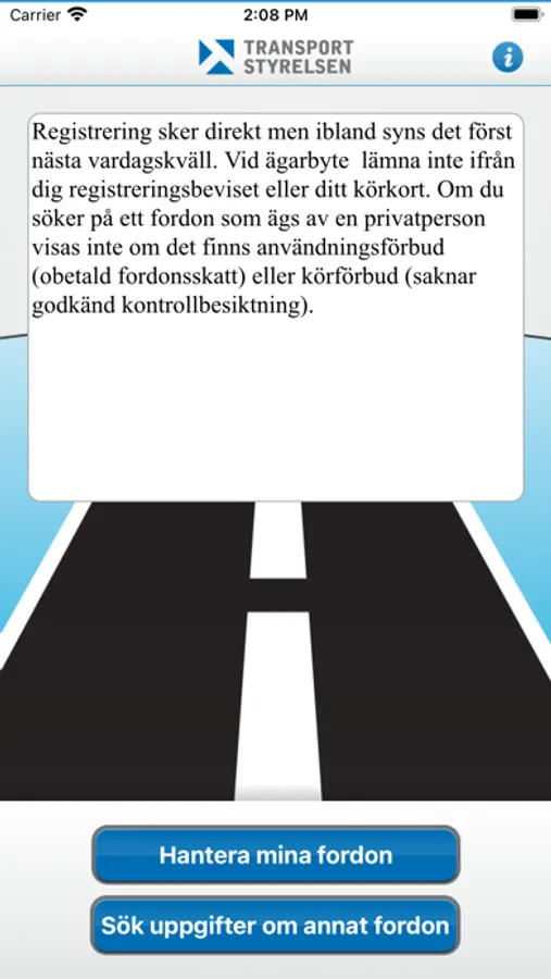 Med hjälp av Transportstyrelsens app kan du både utföra tjänster och få information om ditt eller dina fordon direkt i din smartphone. Du kan också söka information om fordon som ägs av andra.