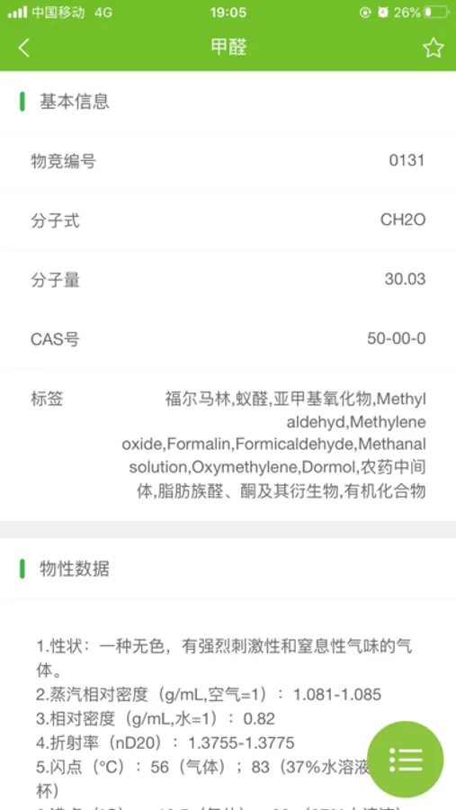 这是一款全中文的化学品综合数据库。支持中文、英文、系统名、CAS号、分类关键词等多种查询方式,50000多种化学品的基础信息、物性、表征图谱、安全、毒理、用途、合成方法等内容。