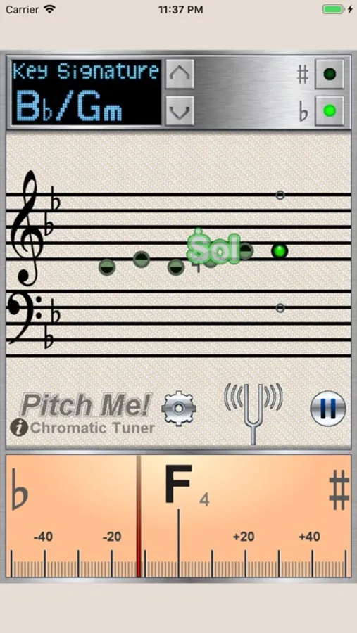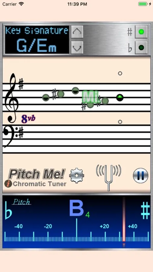 PitchMe not only provides the traditional analog pitch tuning meter but also transcribes detected pitch on the musical staff of a specific key scale. This can really test if you are singing in correct tune.
