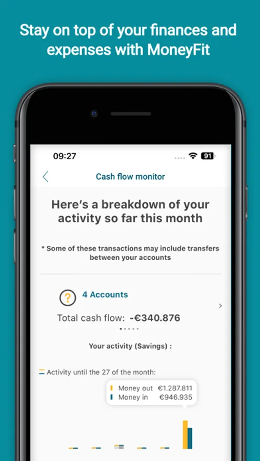 • Check your balances using the convenient “Home” page, where connected accounts are separated per account type (current accounts/saving accounts/cards/loans)