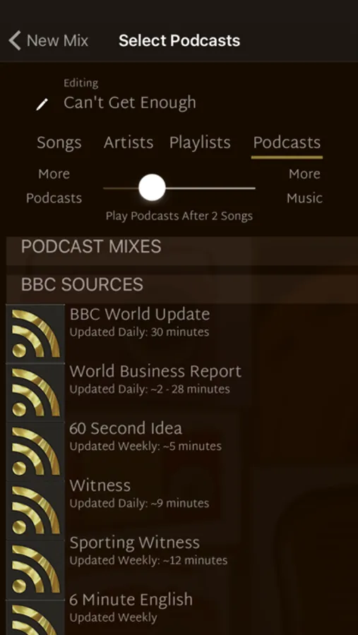 - Choose how often to mix podcasts with music