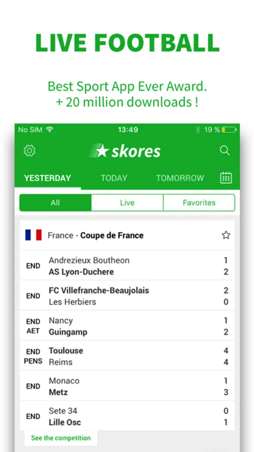 With Skores , you won’t miss a thing in the football matches of your choice! Download the application for FREE!