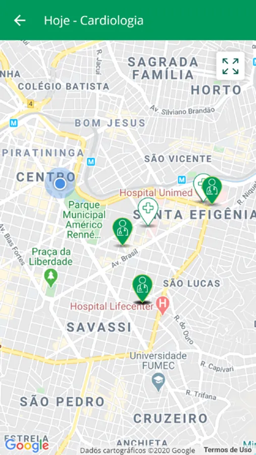 :: Mapa e geolocalização: mapa com toda a rede própria e credenciada sinalizada.