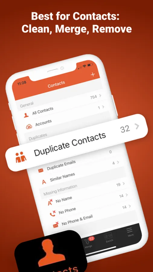 Easy Cleaner is the best contacts cleaner app with three main features that give your address book a huge upgrade, all in one tap: