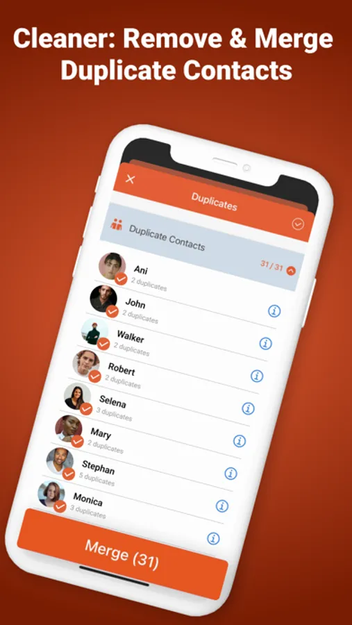 • Remove duplicate contacts
