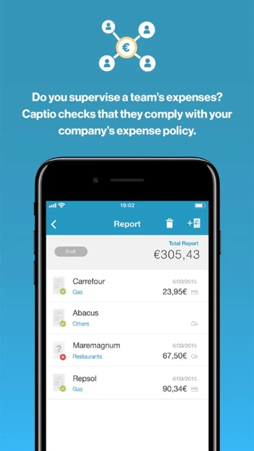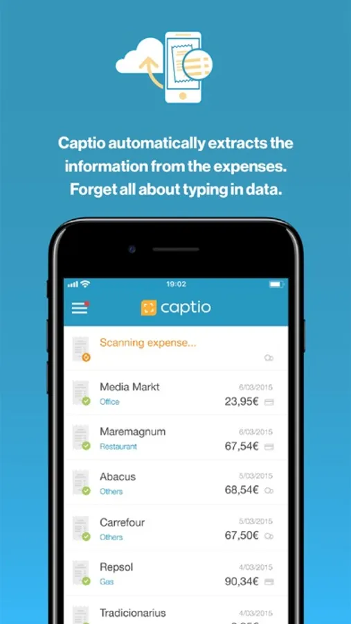 In the free version of Captio, you can try out the automatic data extraction facility with 10 captures (which are renewed every month!), manage the rest of your expenses by entering them manually and generate an unlimited number of reports. In the full version, Captio goes beyond simply filing reports from your smartphone and enables companies and their employees to control their expenses more effectively and discover new saving opportunities.