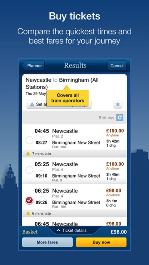 Find all the information you need about train fares and times then buy the cheapest tickets fast. Enhance your train travel experience - Download the FREE National Rail Enquiries app today.