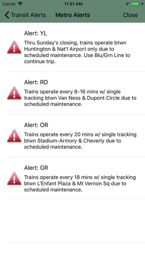 o See transit agency alerts such as delays, elevator/escalator incidents, and any other alerts issues by the transit agency