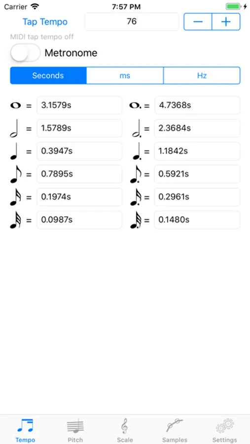 Quaver is a musical calculator and look-up tool for recording engineers and composers. It can calculate the delay times and oscillator frequencies that match a given tempo to help keep things in sync. Its pitch tool can tell you the fundamental frequency of any note in the MIDI range - or perform the reverse calculation. Finally, the scale tool can tell you the notes that make up a given scale and draw the key signature.