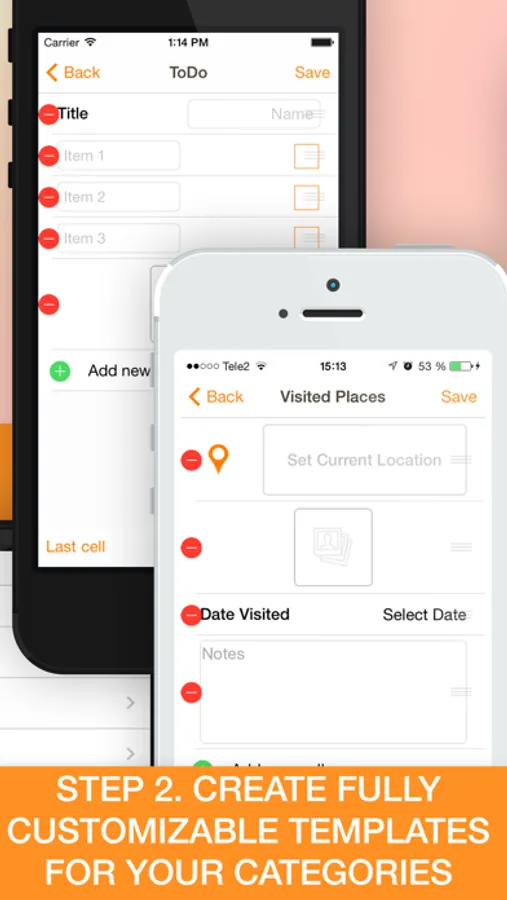 InfiLog lets you create your own lists according to your preferences. You can choose between a variety of input elements such as location, text/numeric fields, images, stopwatch, date/time, checkboxes and much more.