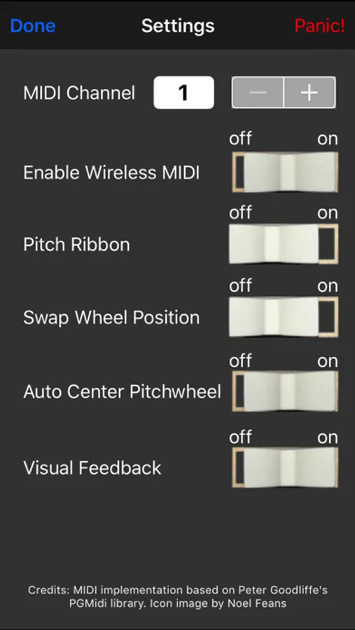 ModWheels brings classical synthesizer modulation and pitch wheels to your iPhone and iPod. Just hook up a MIDI interface and control any MIDI enabled synth or keyboard. In addition to the wheel interface this app also features a pitch ribbon / wheel combination as it could be found on some vintage synths. This app comes in handy when you are using one of these new organ keyboards which also feature synth sounds. But for some reason the designers have forgotten the performance controls? ModWheels help you using the full potential of those keyboards.