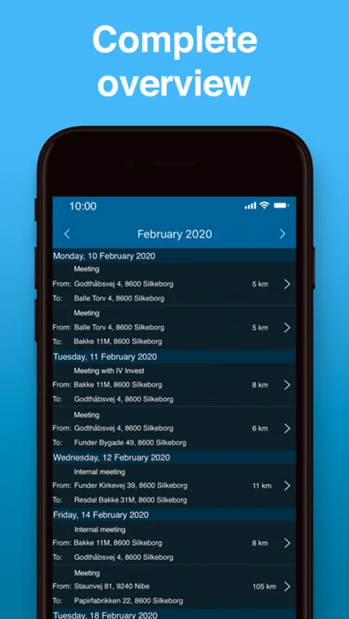- Automatic log of your start and end addresses and times